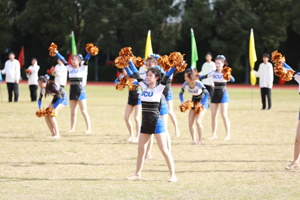 上午8时45分,运动会开幕式正式开始。仪仗队、鲜花队、彩旗队、拔尖创新人才试点班、本科生研究生代表方阵、教职工代表、党校中青班学员代表以及初任培训班代表等依次入场,充分展现了我校师生充满活力、蓬勃向上的精神风貌。紧接着,2023级学生和八段锦文体活动班教师表演了节目《古韵流芳·八段锦雅韵》,校健美操啦啦操以及街舞队表演了节目《动感潮流·街舞啦啦操串烧》,2024级学生表演了节目《跃动青春·韵律操炫彩》。此外,本次运动会还特别邀请了上海体育大学花样跳绳队带来了精彩表演《绳舞飞扬·花样跳绳秀》。