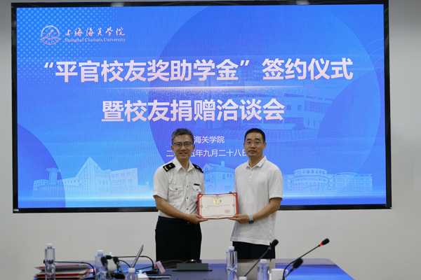 9月28日,“平官校友奖助学金”捐赠续约仪式在上海海关学院举行。校长陈晖、党委副书记杨德春,以及苏州赫耳墨斯国际运输代理有限公司执行董事、校友潘平官出席仪式。仪式上,陈晖为潘平官颁发了捐赠证书和行业导师聘书。杨德春与潘平官共同签署了为期十年的“平官校友奖助学金”后续捐赠协议。